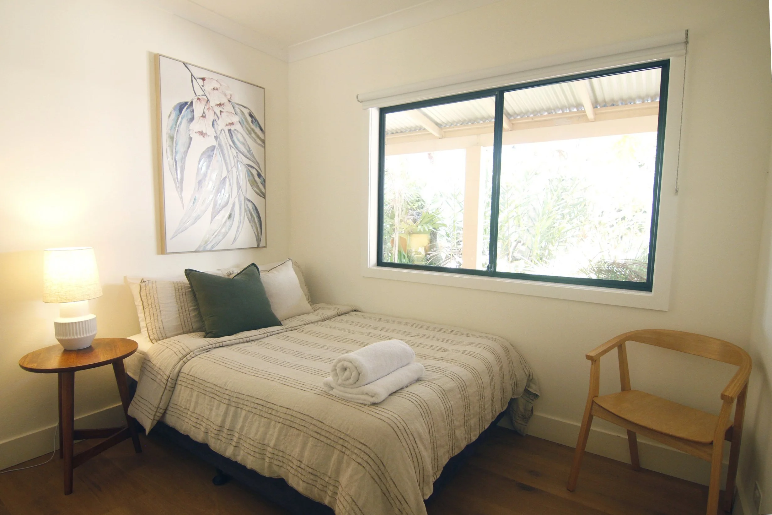 $1690 single use. Located in a separate building just a short walk from The Main House. Four identical bedrooms surrounded by lush gardens each with own entrance, double bed, farmhouse style ensuite, plus reverse cycle air conditioning and ceiling fan for comfort. Including the shared deck to enjoy the sunshine and fresh country air.